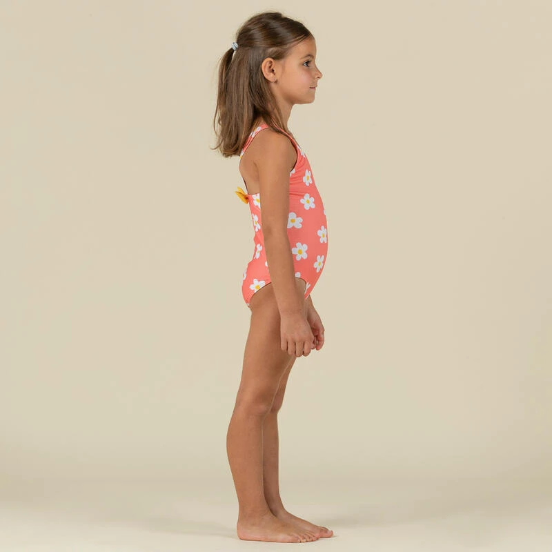 Maillot De Bain 1 Pièce Bébé Fille Texture Gaufré Corail Imprimé Fleurs