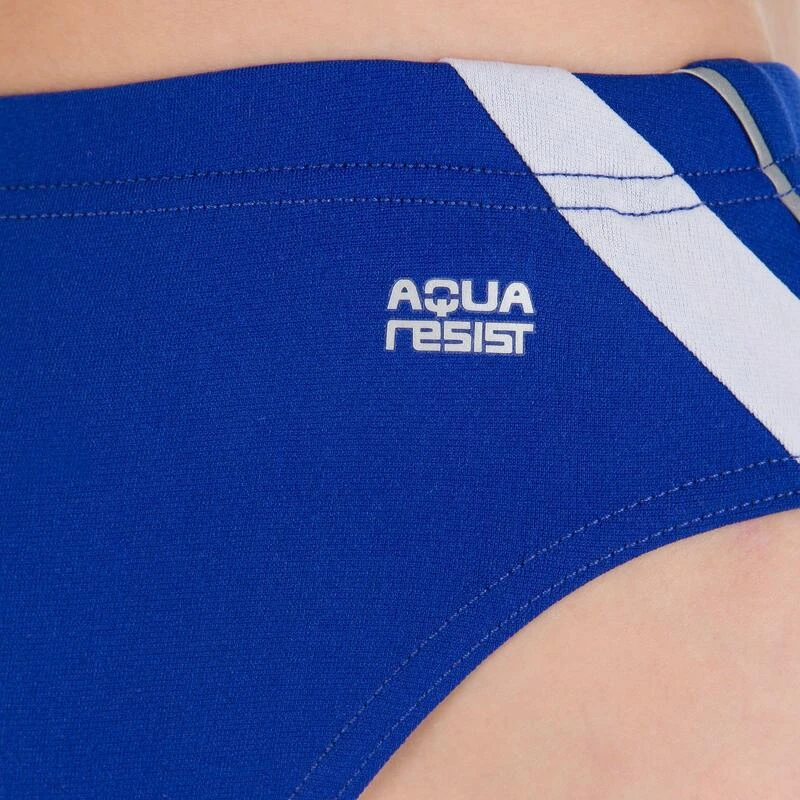 Maillot de bain garçon, forme slip, au look sportif avec un composant résistant au chlore!